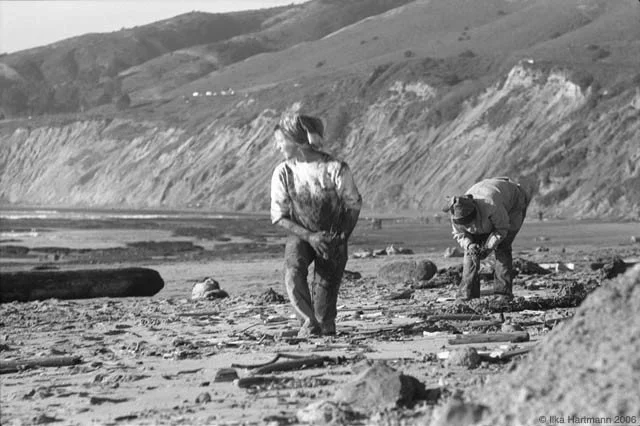 Bolinas resident, Ilka Hartmann, photographed the spill at R.C.A. beach with her partner Orville Schell, capturing iconic photographs of the scene and Orville’s oil covered fist raised to the sky that was later included in the congressional record of the spill (Haworth 2021).